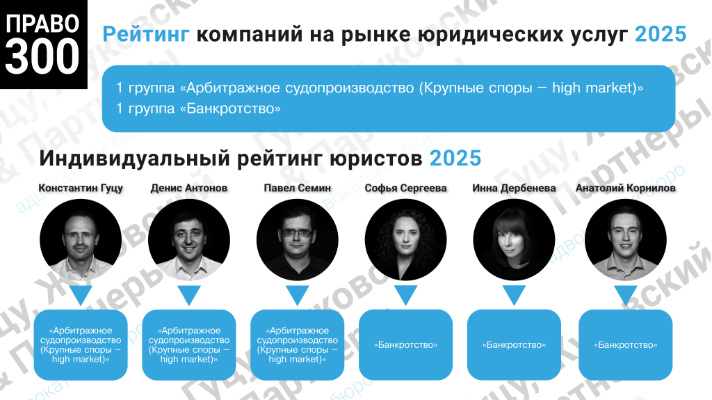 The ranking of companies in the legal services market and the individual ranking of lawyers from Pravo-300 in 2025